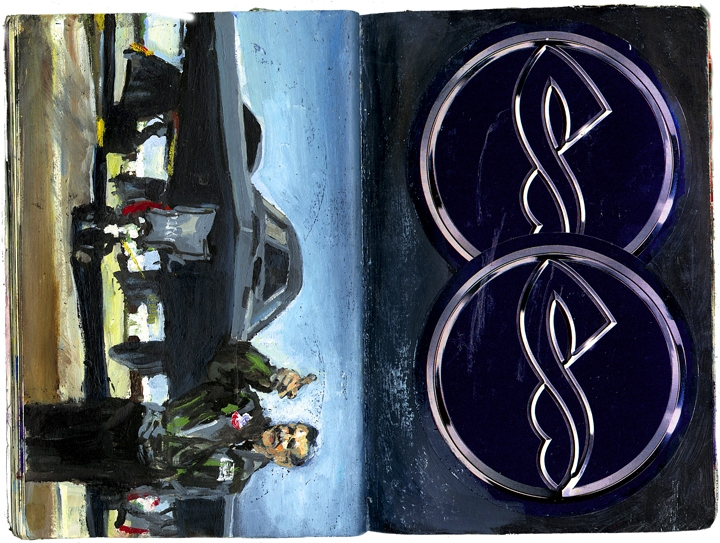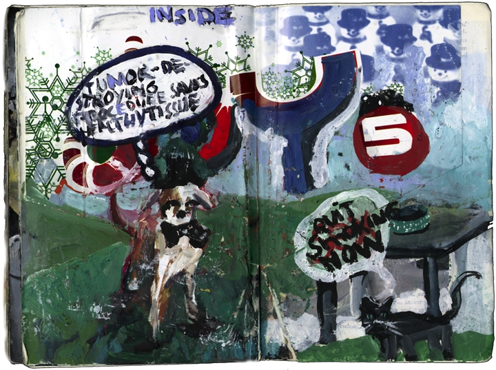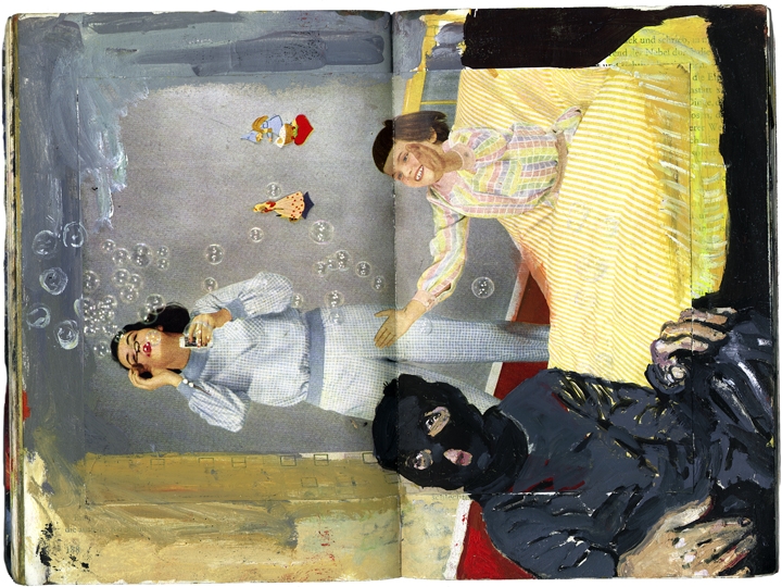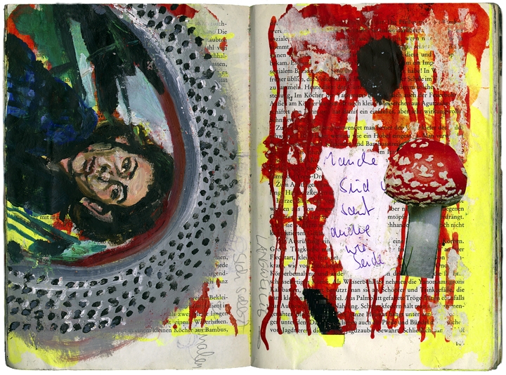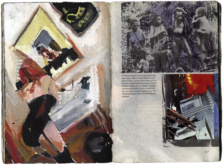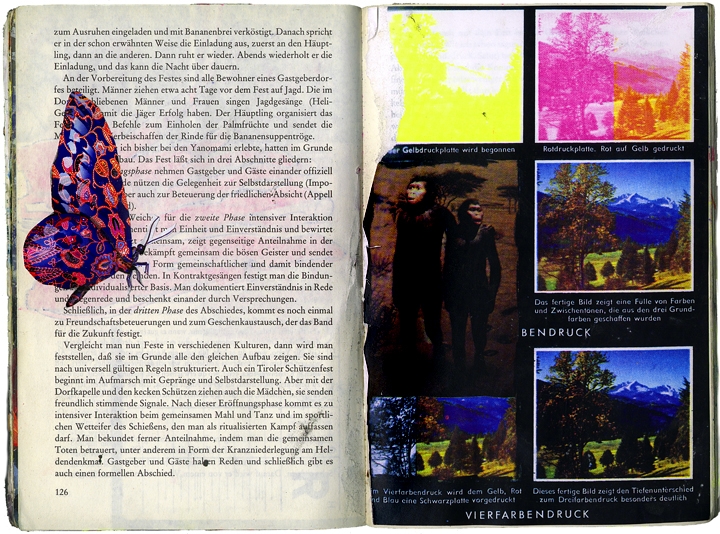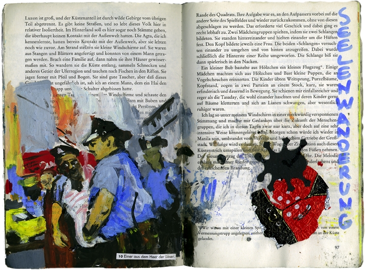 Eibl – Eibesfeld. Eine naturwissenschaftliche betrachtung kultureller verhaltensweisen öl und collage im taschenbuch 18,6 cm x 12,7 cm 2003-2005