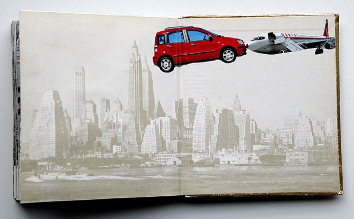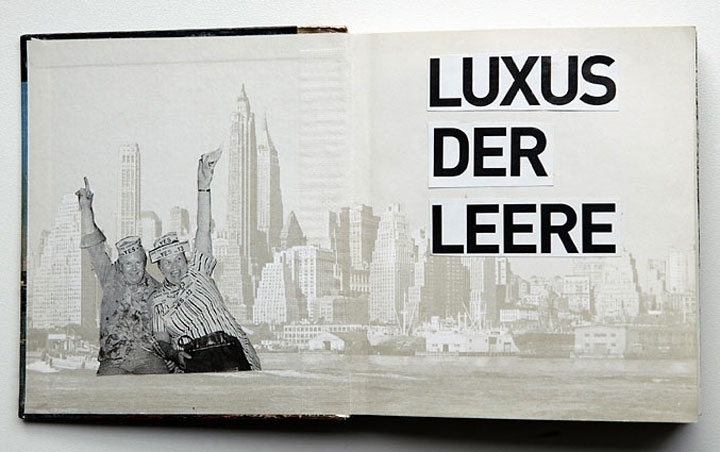 New York »Luxus der Leere« collage im gebundenen Buch 11,9cm x 10,7cm