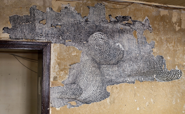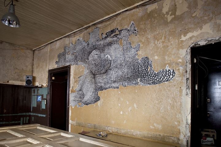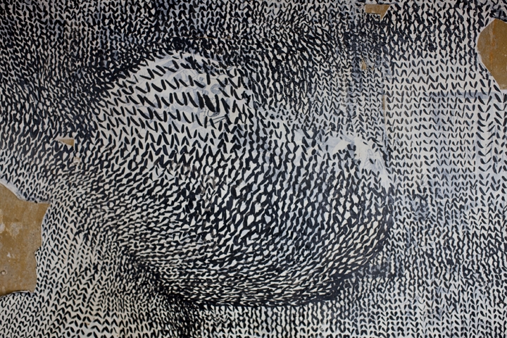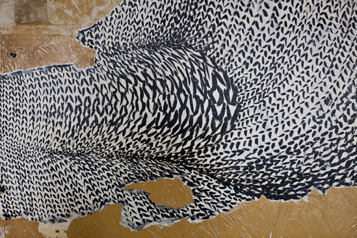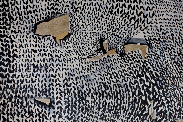 frühperle 2009 o.T. übermalte comic collage/wand 2009 noch sichtbar darunter: die comiczeichnung von Nora Below
