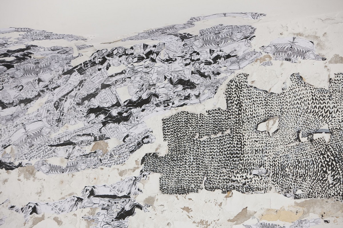 »wo wer nun« malerei/papier und wand comic-collage kabawerke, »horst«, bremen 2010 comic-kopien von: nora below, sister chain und tristan wilder vielen dank!!