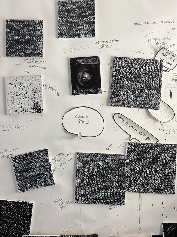 »zosch« oder Zukunftskompetenz acryl auf Leinwand 160 x 240 cm 2023»die diskretion des unsichtbaren« Acryl, silikon auf Leinwand 120 x 180cm 2023